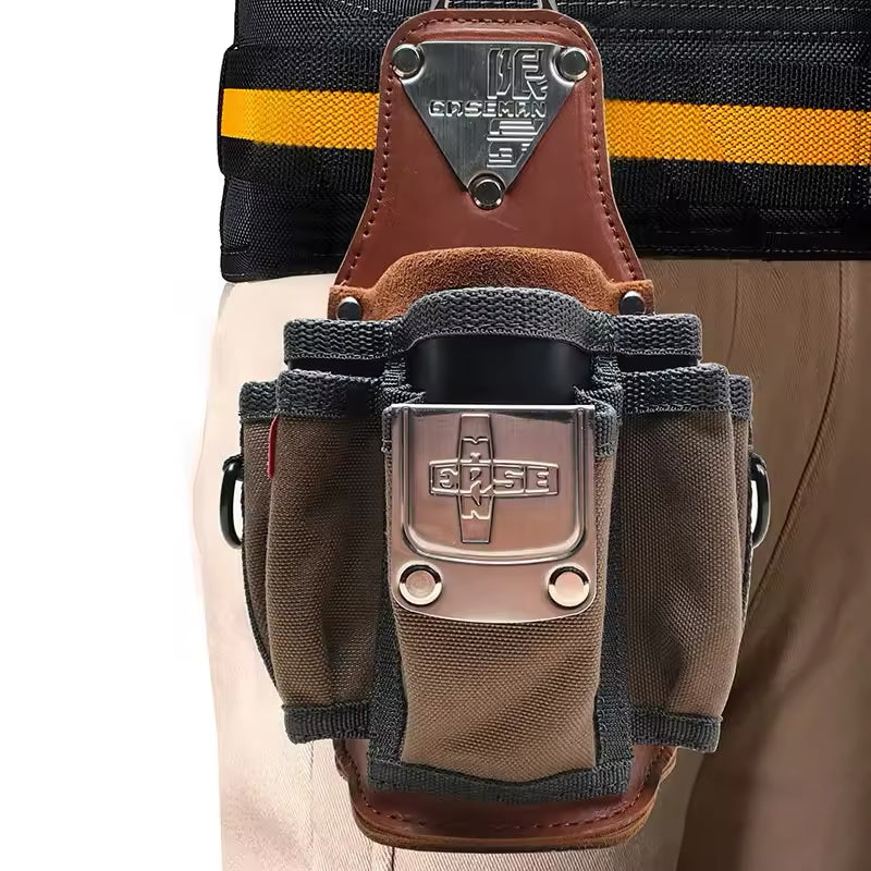 The Tool Waist Bag is not just another tool bag; it's a meticulously designed accessory crafted to enhance your work efficiency. Made from premium cowhide leather, this bag boasts a fine texture that offers durability and resistance to wear and tear. Its multifunctional design includes a quick hanging hook, making it easy to attach and detach from your belt or waist. Whether you're working in a bustling workshop or managing a construction site, the bag's compact and lightweight build ensures that your tools are always within reach without adding unnecessary bulk.nn**Versatile and Professional